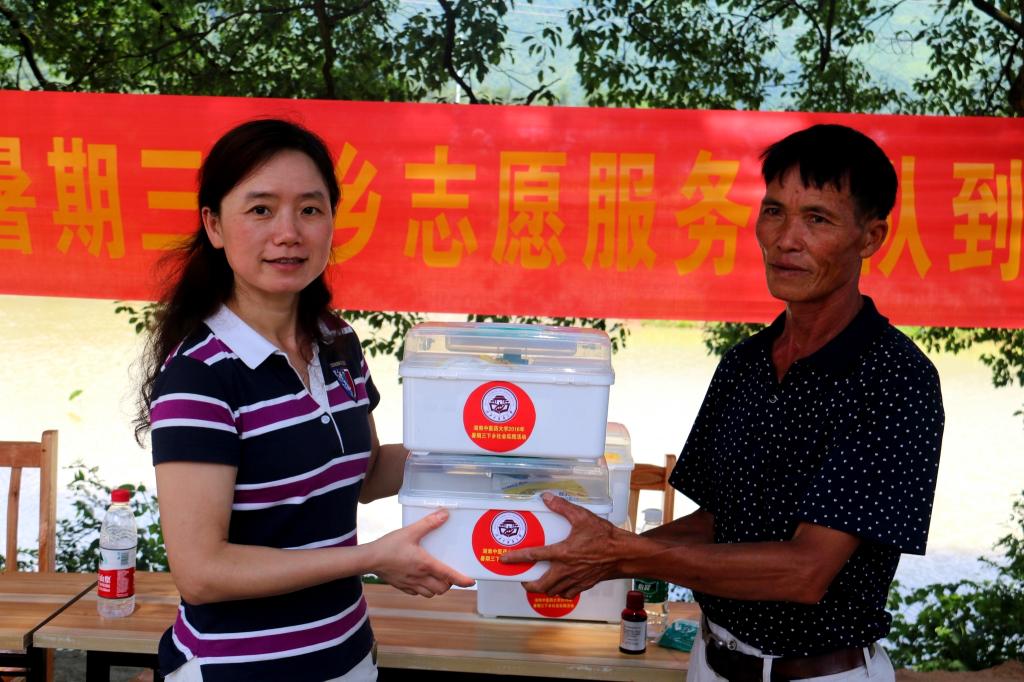 6日下午,志愿者队伍经过6个小时跋涉顺利到达永州市新塘村。随后,志愿者们对当地村民展开了关于农村地区中医药普及状况的调查。同学们的热情丝毫不受炎热天气的影响,积极采访当地居民,认真完成工作。当日,我校团委书记焦珞珈、学生工作处处长谭琥、医学院党总支书记文红艳、中西医结合学院院长邓奕辉及院党总支副书记杨彤在当地领导的陪同下走访了当地居民并表示慰问。