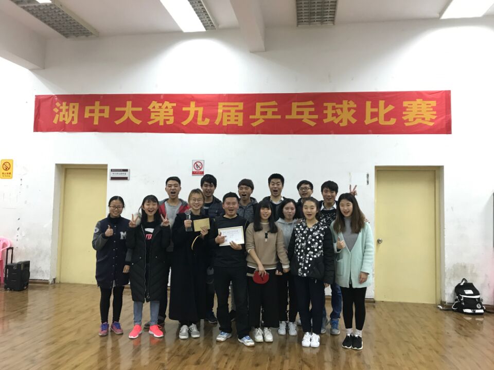 2017年12月4日至8日,由湖南中医药大学大学生社团联合会乒乓球协会举办的“第九届乒乓球比赛”在我校含浦校区体育馆乒乓球室举行。本次比赛分为单项赛和团体赛。包括男单、女单、男双、女双、混双五个项目。
