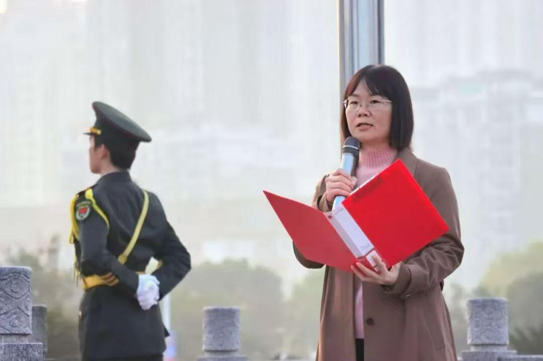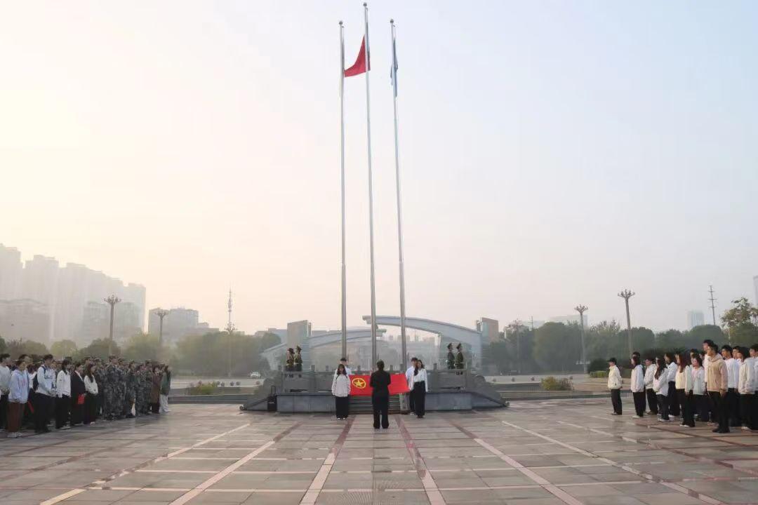 2025年11月5日晨,湖南中医药大学中西医结合学院于含浦校区南大门广场举行以“铭记历史、缅怀先烈、珍爱和平、开创未来”为主题的升旗仪式。学院党委副书记聂慧芳,学生科全体辅导员,学院团学干部、学生党员代表及2025级全体新生参加活动。