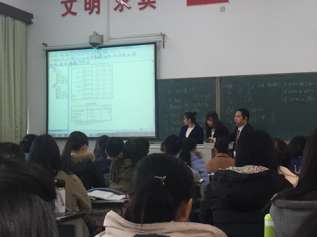 12月8日下午,副校长柏正平带领中西医结合学院相关负责人一行在一号教学楼1101教室听取了我院魏高文老师讲授的《卫生统计学》课程。魏老师采用理论和操作相结合,联系临床及科研,讲解了R×C表资料卡方检验及多重比较,教学纪律良好,课堂气氛活跃,并认真准备好了教材、教案、讲稿、PPT、教学进度表及学生花名册,呈现出高质量的课堂教学效果。柏正平认真记录了本次课堂的教学情况,并在课后同魏高文就本次课的授课思路等进行了沟通和交流。