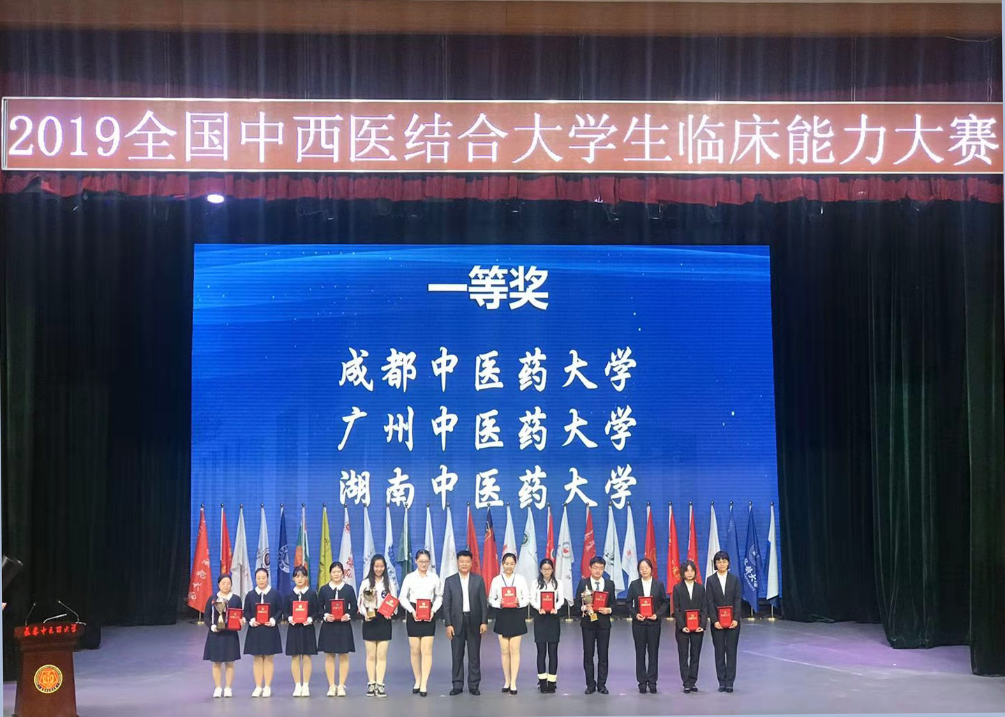 11月15日至11月17日,2019年国中西医结合大学生临床能力大赛在长春中医药大学举行。本次竞赛是中西医临床医学专业的全国性首次竞赛,吸引了全国29所中医药大学参赛,经过三天激烈角逐,由我院2015级学生王敏,郭杏仁,文宇琪,陈佳露组成的代表队斩获全国团体一等奖和优秀组织奖。